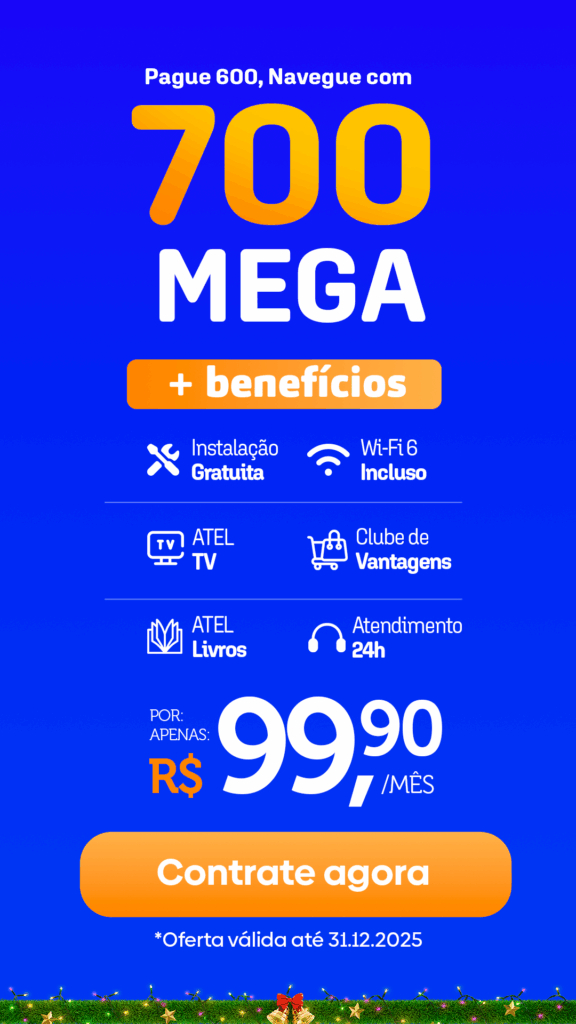 Na Atel, temos planos de internet feitos para atender diferentes necessidades, desde a navegação básica até o uso intensivo de dados. Nossos pacotes incluem velocidade, estabilidade e uma experiência de entretenimento completa, com adesão gratuita e vantagens especiais.