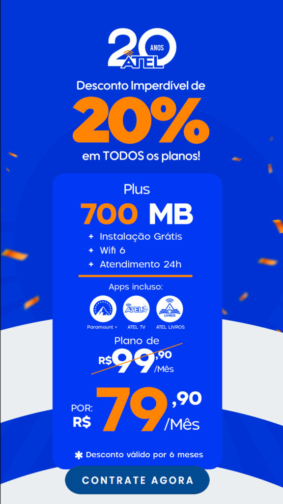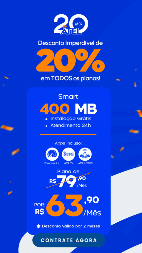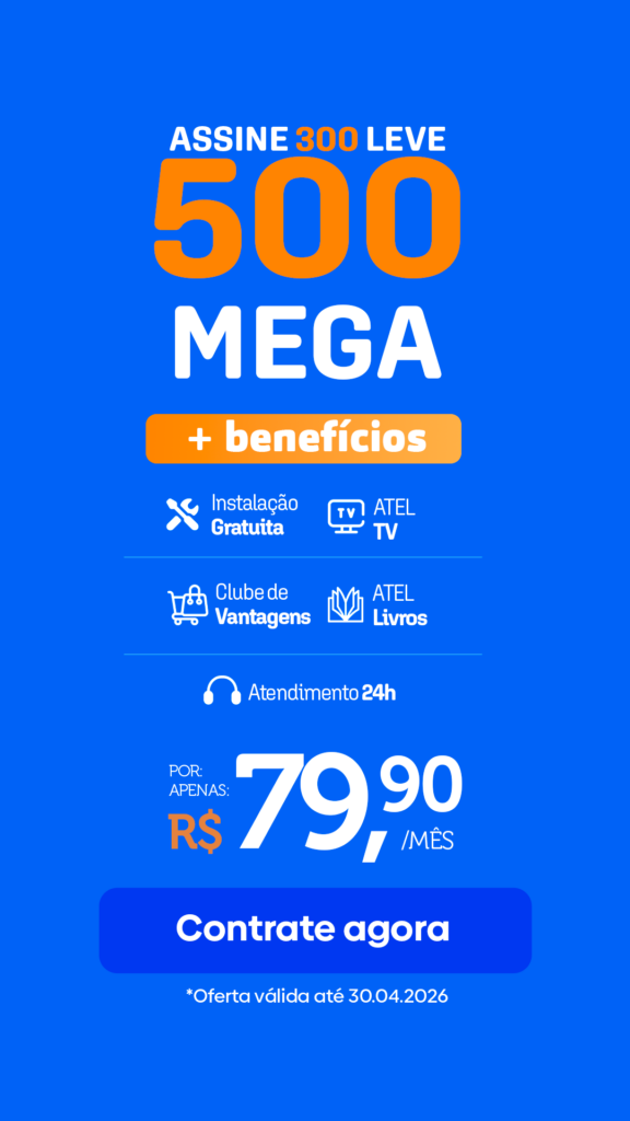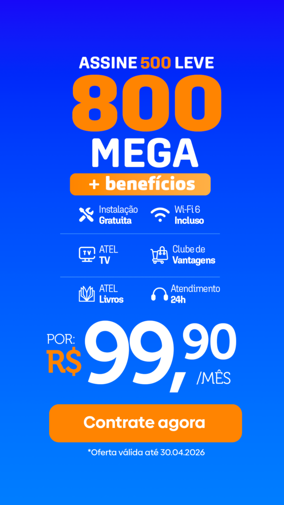 Na Atel, temos planos de internet feitos para atender diferentes necessidades, desde a navegação básica até o uso intensivo de dados. Nossos pacotes incluem velocidade, estabilidade e uma experiência de entretenimento completa, com adesão gratuita e vantagens especiais.